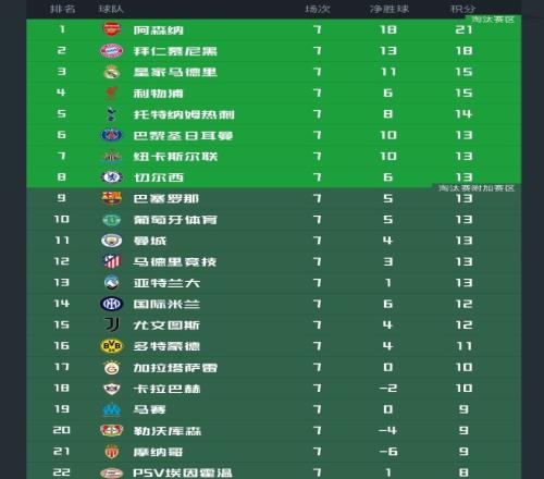 北京时间1月22日,25/26赛季欧冠联赛阶段第7轮的比赛已经全部结束,积分榜的形势也产生了进一步的变化。阿森纳和拜仁齐齐提前出线,榜尾的4支球队也提前出局;而在晋级区和附加赛区域更是一片混乱,不管是巴萨,国米,切尔西,曼城等豪门都有踢附加赛的危险。
