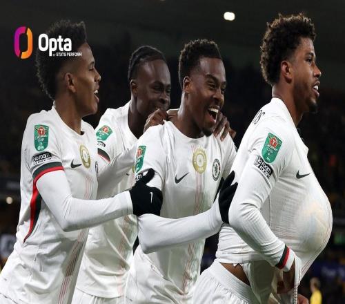 英联杯第四轮,切尔西客场4-3击败狼队,4粒进球均由21岁及以下球员打进,切尔西创造了英超球队纪录。此役客场对阵狼队,切尔西以4-3的比分取胜,为蓝军取得进球的分别是21岁的安德雷-